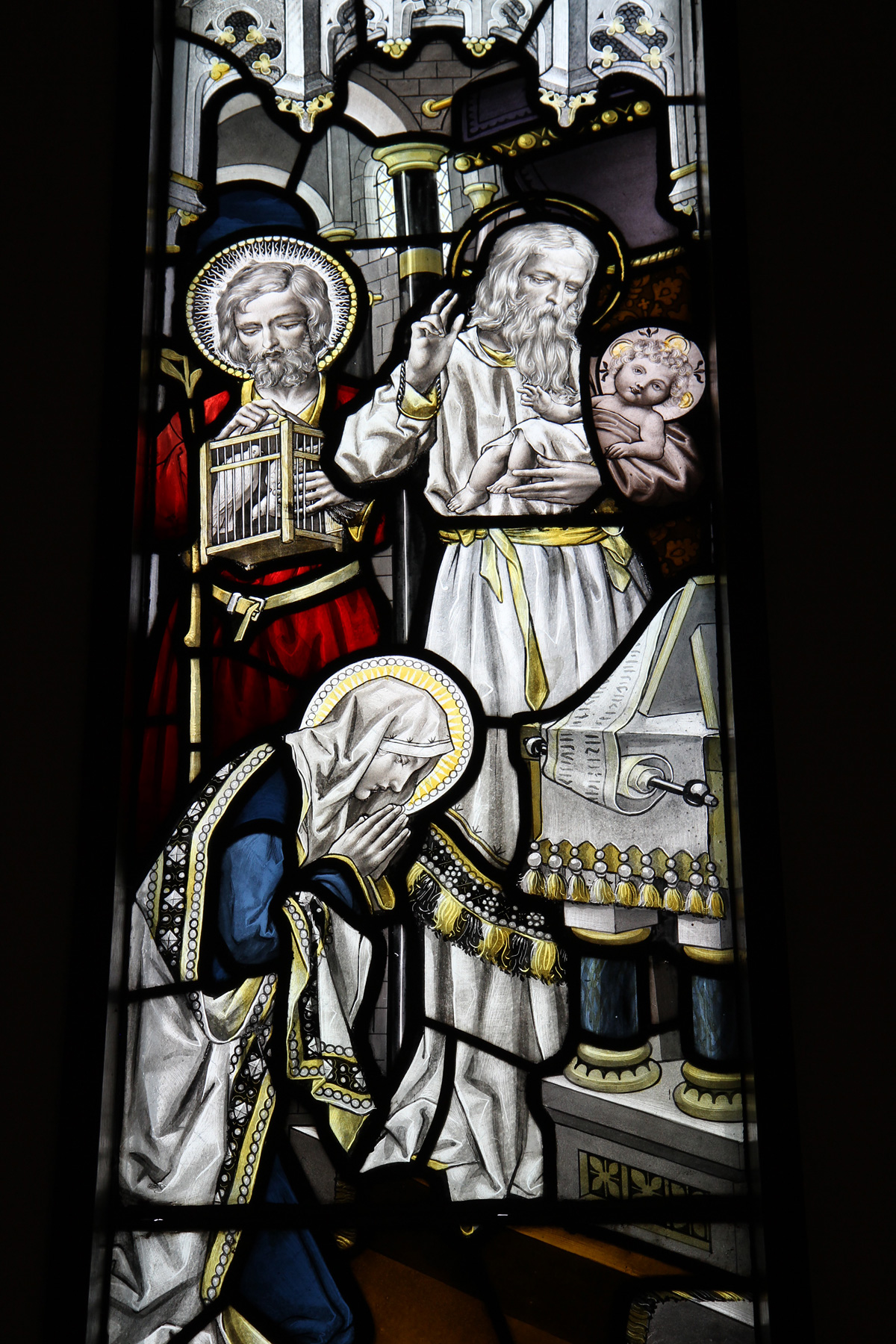 生後40日目、初めての長子を神の御前に捧げるため、マリアとヨセフはイエスを連れて神殿にやって来ました。祭司シメオンはこの乳飲み子をひと目見るなり、それがキリスト(=救い主)であることを悟り神を誉め讃えました。
