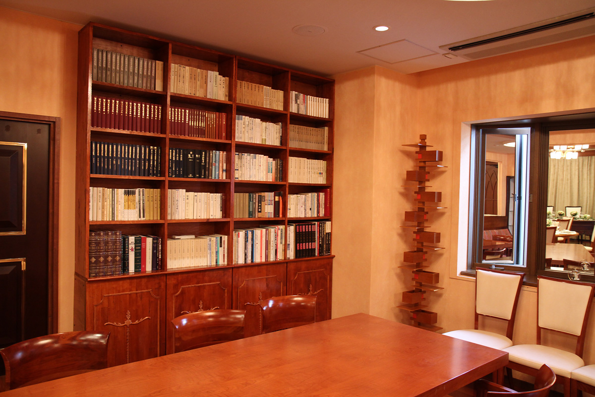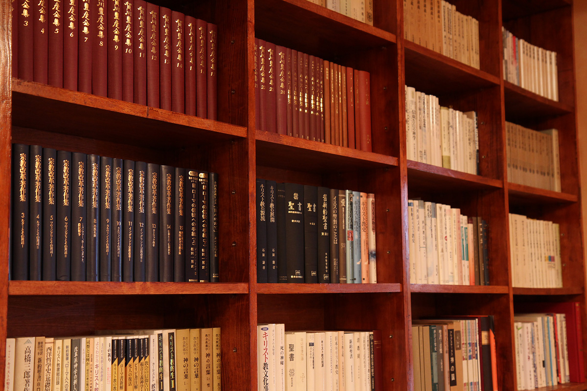 教会関係の書籍を集めた図書室は、講演会や集会にも使えるようゆったりと造られています。毎週月曜日のバイブルクラスもここで開かれています。
