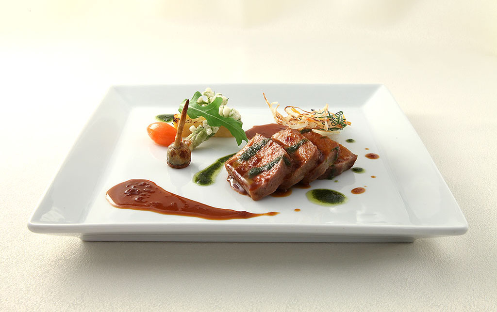 スペイン王室御用達ブランドのイベリコベジョータをフォンドヴォーとバジリコや松の実、