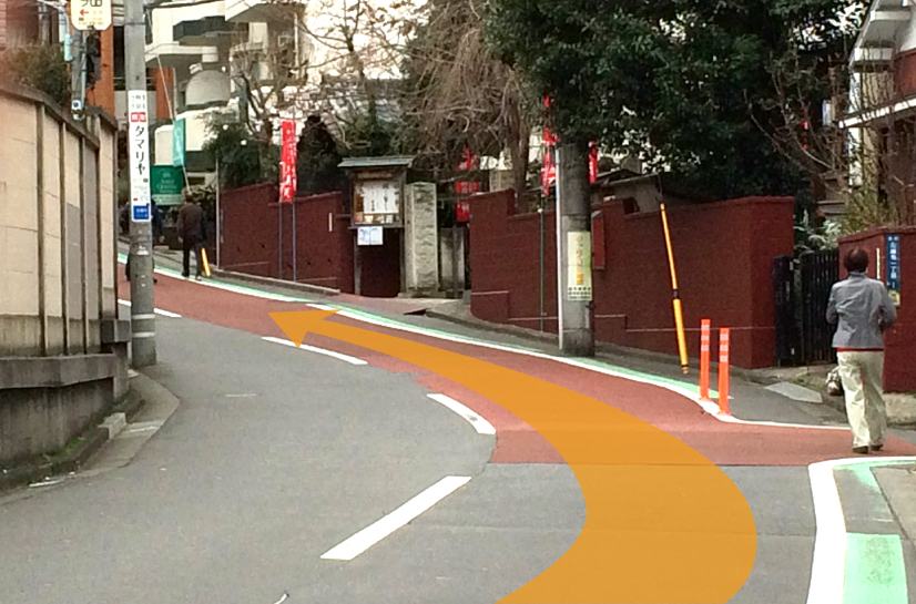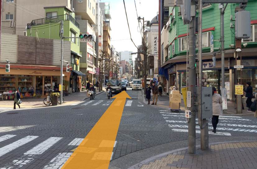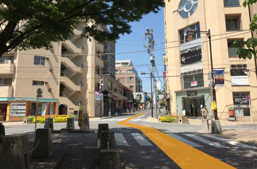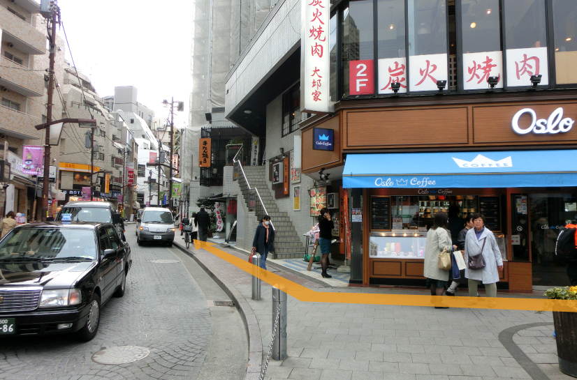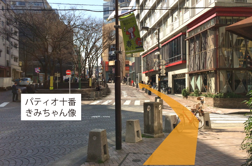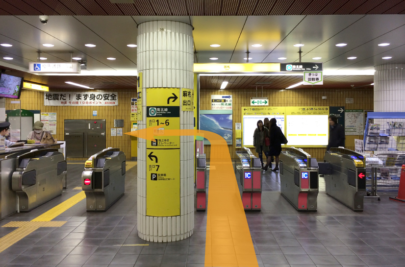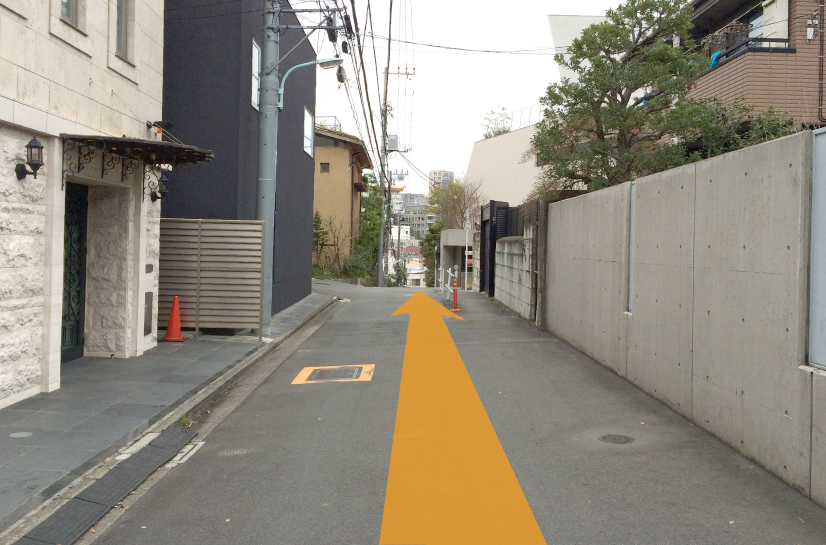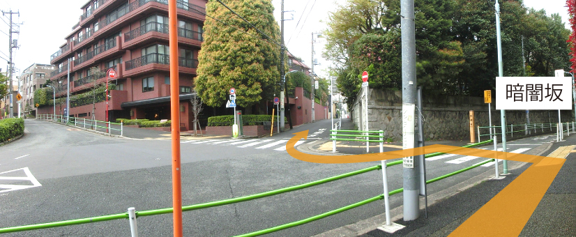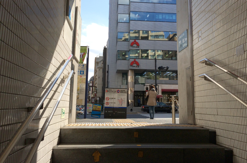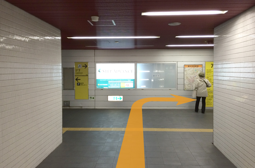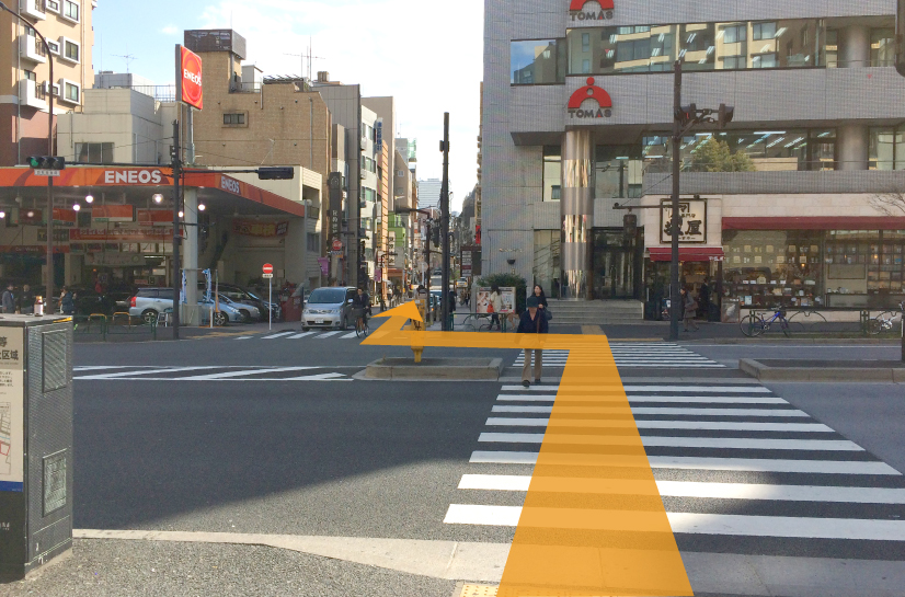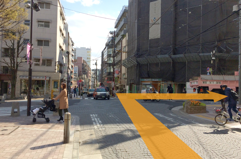 地上に出たら、目の前の横断歩道をわたって直進してください。