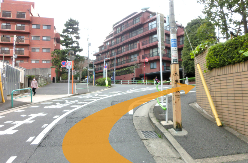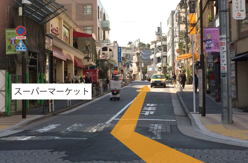 左手のセブン-イレブンを過ぎたら、最初の十字路を右折してください。