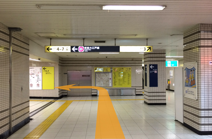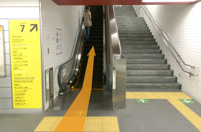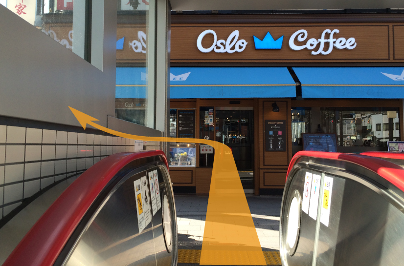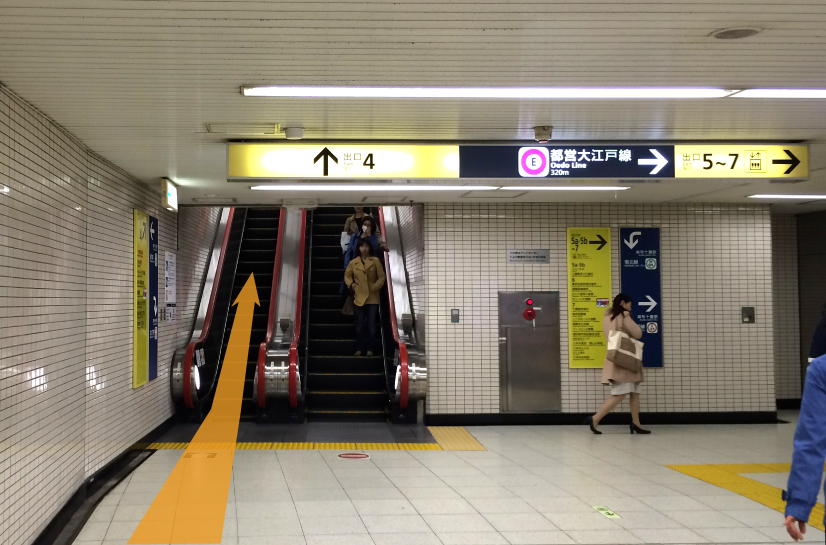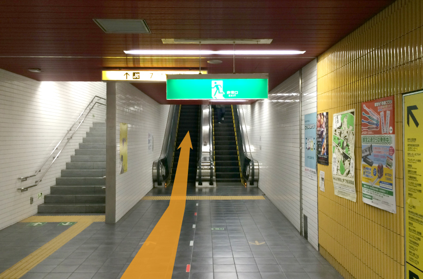 そのまま正面のエスカレーターに乗って地上へ(4番出口)
