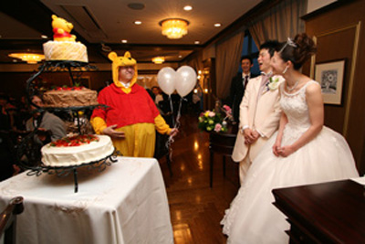 プーさんがプーさんののったウェディングケーキを持ってきてくれた所が印象に残っています。