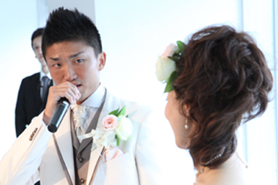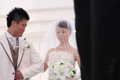 挙式でたつやがまっていて、かよが入場して目が合った瞬間