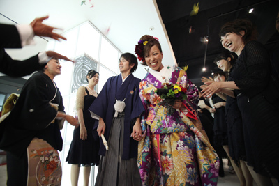 鶴シャワーで退場してドバッと鶴が降ってきたとこ。