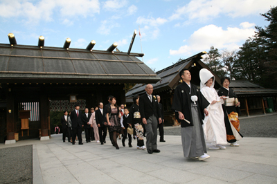 挙式は北海道神宮でしたが、天気も最高に良く、外でいっぱい写真を撮ったり、知らない人から「おめでとう!」と言ってもらえて、とーっても思い出に残りました!!