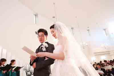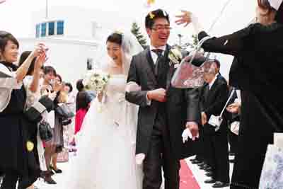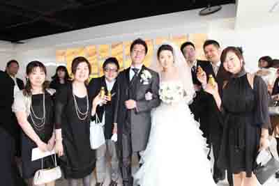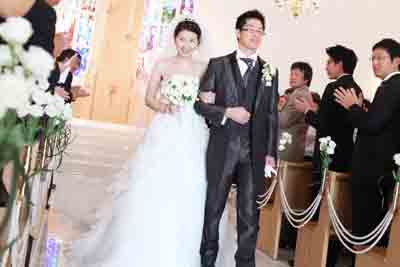 式はステキな教会でたくさんの方々に祝福してもらって、記憶に残る式になりました。
