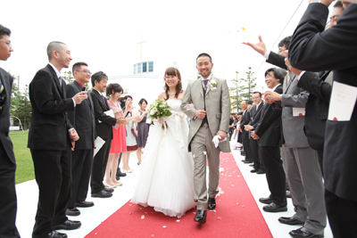 挙式の後、教会を出てガーデンを歩いた場面。