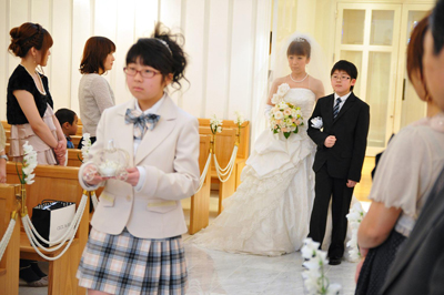 挙式は娘がリングガール、息子と入場という少し変わったシチュエーションでしたが、家族4人で挙式ができ嬉しかったです。4人とも緊張してガチガチでしたけど(笑)