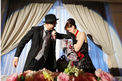 ・私達が描いていた披露宴が出来たのは山田さん初めスタッフの方々のおかげです。漠然としていた時も私達の思いを組とってもらえた時は嬉しく、楽しくなりました。毎回の打合せも、すごく楽しくて幸せなひとときでした。MMGで過ごした時間は私達夫婦にとって貴重な時間でした。いつかゲスト側で出席したいという夢も増えました。記念日には遊びに行けたらいいな♪これからも沢山のHAPPYがMMGに訪れますよーに♪