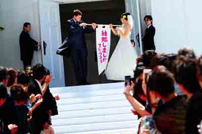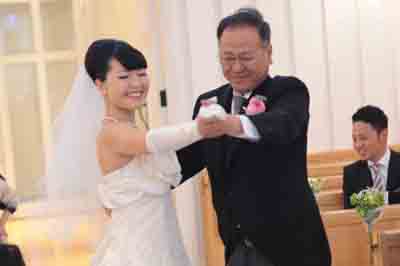 厳粛な式より楽しい式にしたいと思い、新婦の大好きなアメリカドラマGLEEのワンシーンをアレンジ。POPな音楽に合わせ、ブライドメイド、ベストマン、新婦父と踊りながら入場する挙式を行いました。うまく踊れるか、場がしらけないか心配だったのですがバッチリ音楽に合わせることができ大成功(だと勝手に)思っています♪何より、新婦父の楽しそうな笑顔が忘れられません。