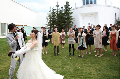 ・ガーデンやパーティ会場にも大きな窓があって光を感じることが出来、昼間・夕方・夜(イルミネーション)の時間の流れを感じて、すてきだったと言われました。