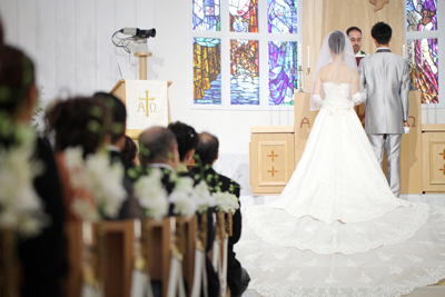 ・チャペルの広さと、天井の高さ、ステンドグラス!