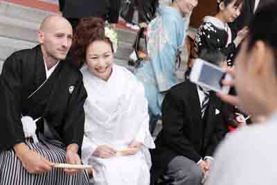 お色直し後は侍姿で新郎を登場させました。これは、だれも知らなかった演出だったのでゲストの反応が大変良く、喜んでくれました。