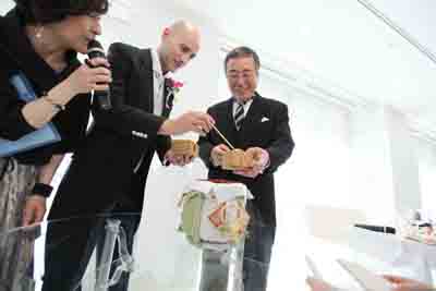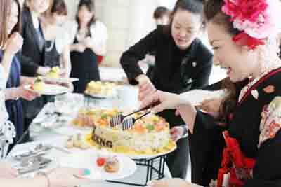 また、侍姿に合うようにケーキ入刀をちらし寿司入刀にしたかったので、シェフとプランナーの方に入刀の見栄えがいいちらし寿司をご提案頂きました。