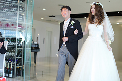 神宮挙式で父とヴァージンロードを歩けなかったのでサプライズでパーティーで一緒に入場できたこと!