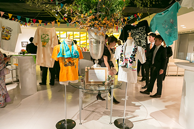 私達が持参したタオルやTシャツを用いて夏を感じさせてくれる