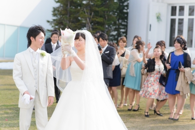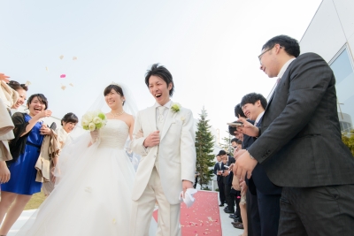 外でのフラワーシャワー