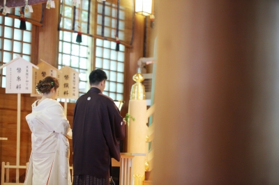 挙式は神前式ということもあり雰囲気に圧倒され、とても緊張しました。