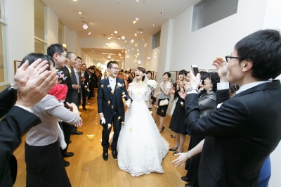 挙式の入場の際の聖歌隊の生歌がすごいと大好評!
