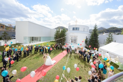 挙式を終え、ガーデンに出ていく際