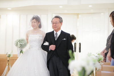 全部1つ1つが印象に残っているけど、ぱぱと挙式入場で扉が開いた瞬間。友達やみんなの顔を見た時 緊張が少しゆるんだのと、ついに始まったので感極まり終始なきそうでした~。(ご新婦様)