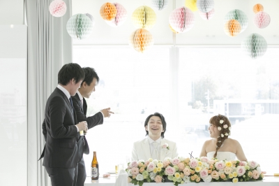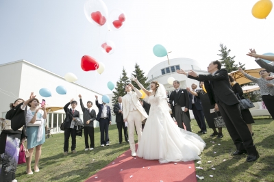 パーティからはとにかく楽しむだけでした!天気もよく、ガーデンでのフラワーシャワー、バルーンリリースができてとても満足です。デザートビュッフェ、お茶漬けをゲストへサーブできたのもゲストと近くて良かったと思いました。