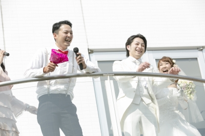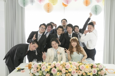 ブーケトスの後のキャンディトスで新郎友人側がキャッチし、その後そのまま乾杯のあいさつをしてくれたのも盛り上がりました!