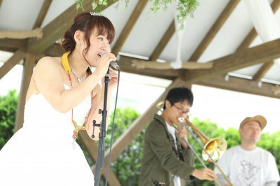 ガーデンでのバンド演奏です。見学の時からこのガーデンで自分のバンド演奏がしたい!!と思い会場を決めたので夢が叶ってうれしかったです。