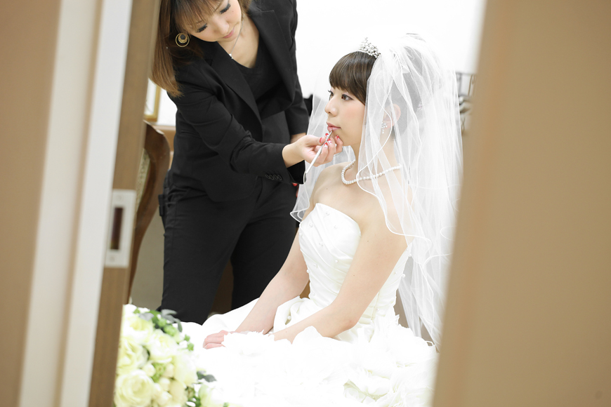 まずは札幌宮の森ミュージアムガーデンでヘアメイク。1時間30分かけてイメージどおりのお姿に変身! 事前にヘアメイクリハーサルを行うことも可能です(¥21,000)